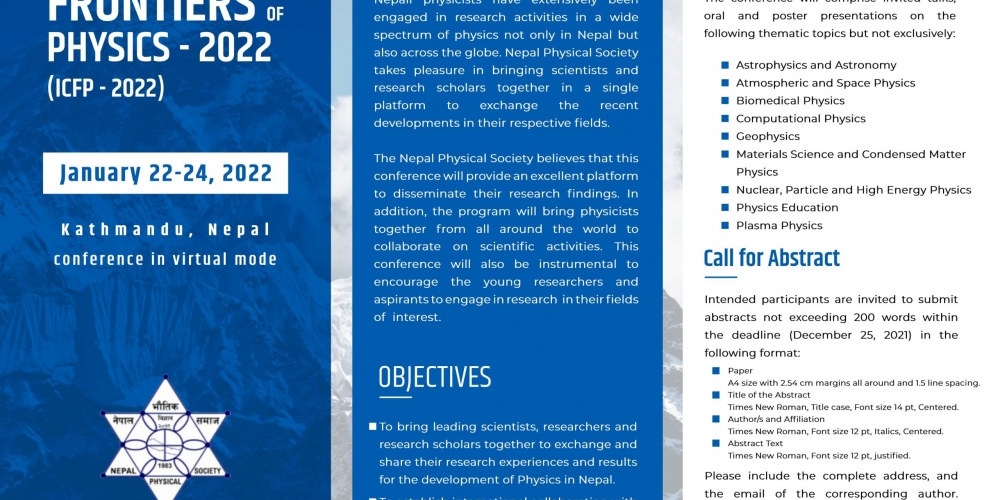 The Nepal Physical Society believes that this conference will provide an excellent platform to disseminate their research findings. In addition, the program will bring physicists together from all around the world to collaborate on scientific activities. This conference will also be instrumental to encourage the young researchers and aspirants to engage in research in their fields of interest.